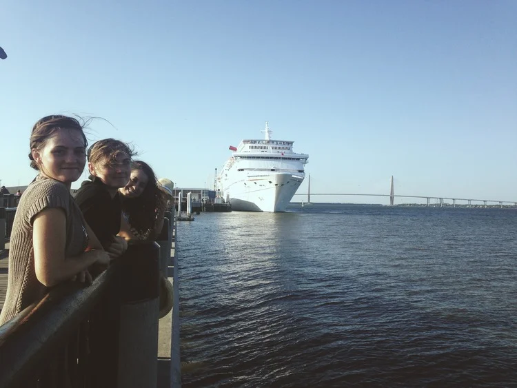 A windswept walk by the harbor, in which we watched a docked cruise ship preparing to cruise on it.
